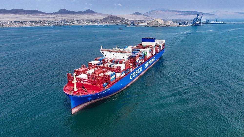 “十四五”时期,中国以高水平对外开放为世界经济注入暖流。图为2024年11月17日在秘鲁钱凯港拍摄的“秘鲁”轮。 新华社发 梅涵/摄